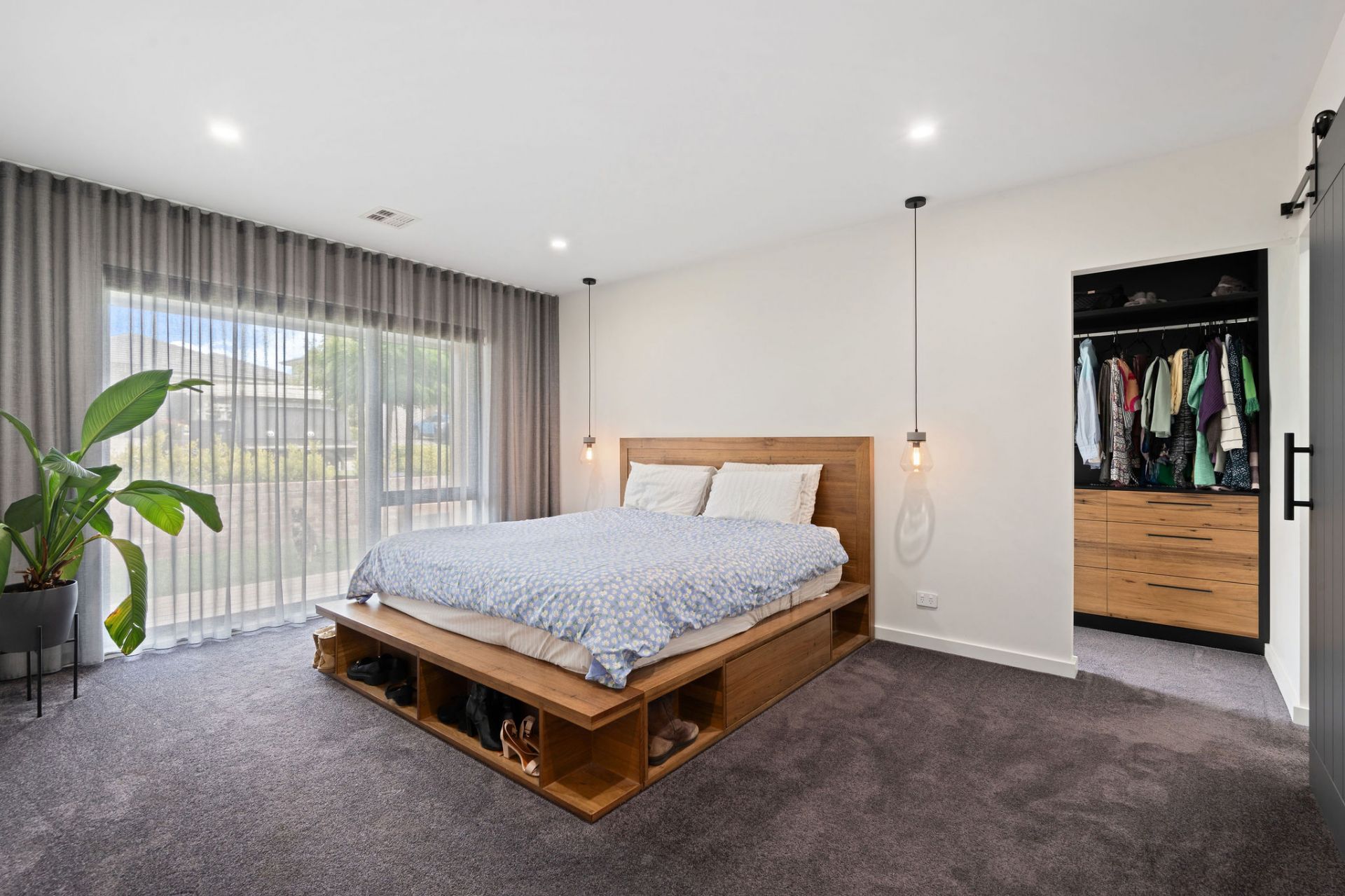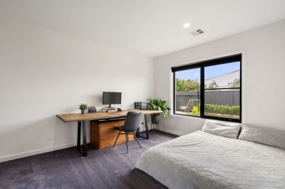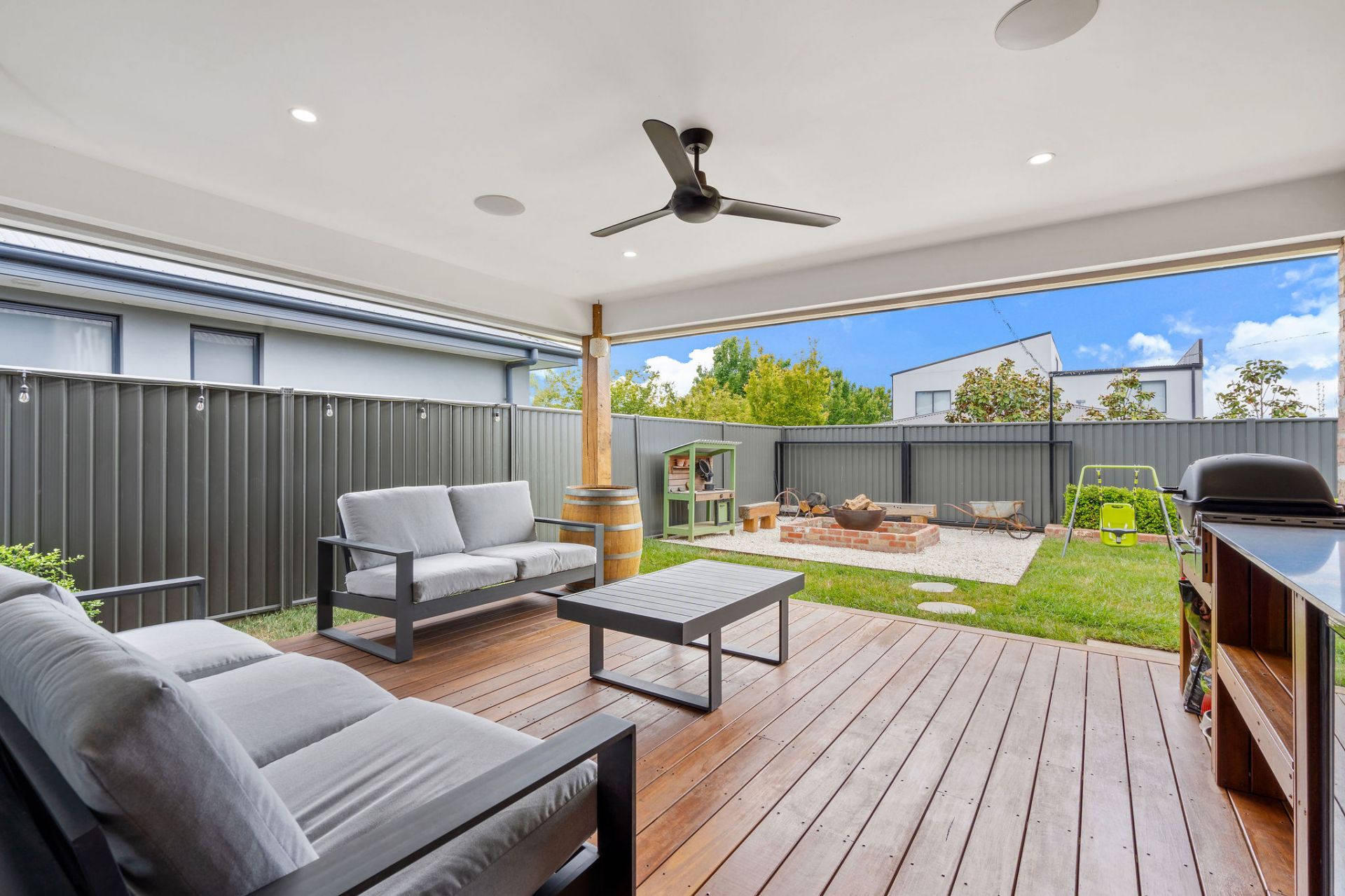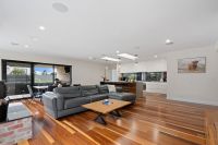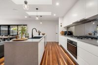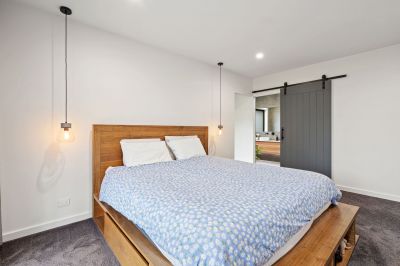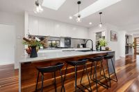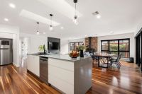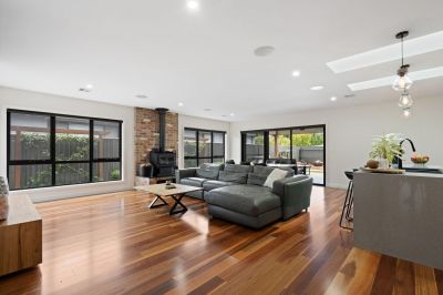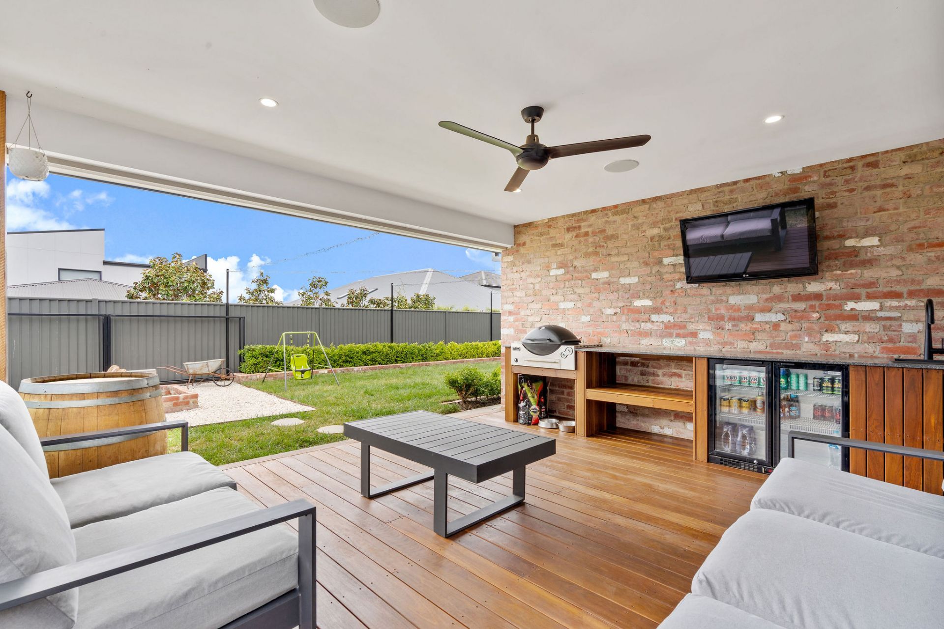 The extensive use of spotted gum timber flooring combined with the subtle use of recycled old Canberra red bricks make a statement that sets this property apart with their earthy tones. A large central open plan living area is adjacent to the kitchen with stone bench tops, gas hotplates, ample bench space and storage complemented by a well-appointed butler's pantry. Flowing off the living area is the large alfresco area with timber decking, ceiling fan, built in double glass door fridge and barbeque.