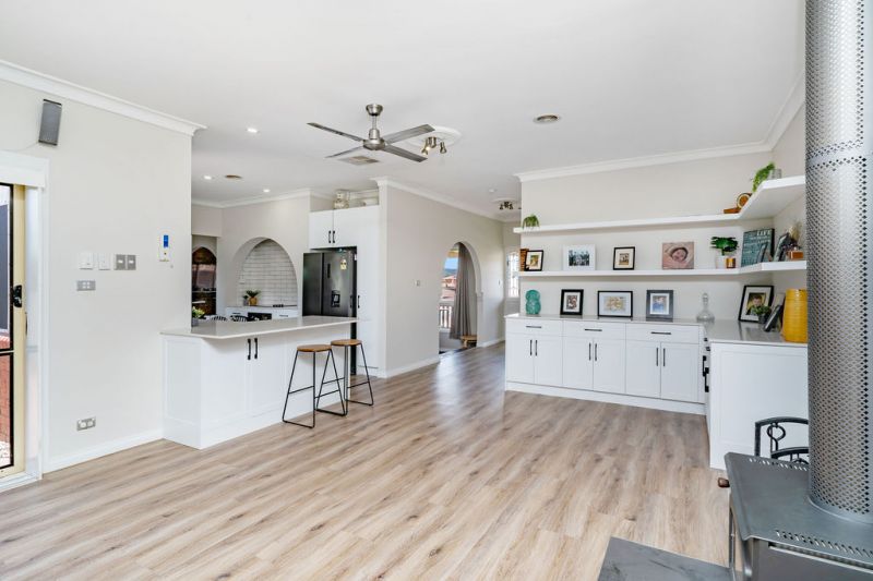 Positioned in one of Karabar's quiet streets backing Jerrabomberra Mountain Reserve, this fully renovated, raised single-level residence offers stunning panoramic views of the surrounding valley. The home is positioned on an elevated block and features smart, modern interiors flowing to a large under cover alfresco area which is perfect for home entertaining. Fully landscaped gardens enhance the livability of the home and provide a private sanctuary close to the amenity of Queanbeyan, Jerrabomberra and Googong Town Centre's.