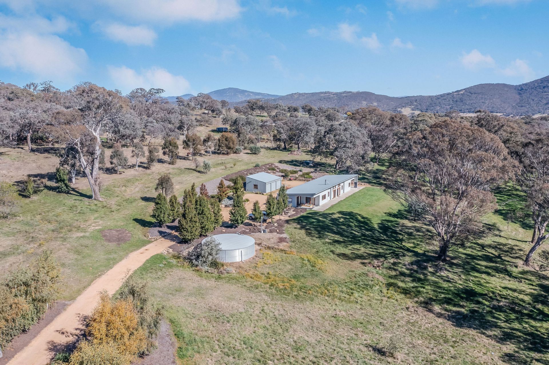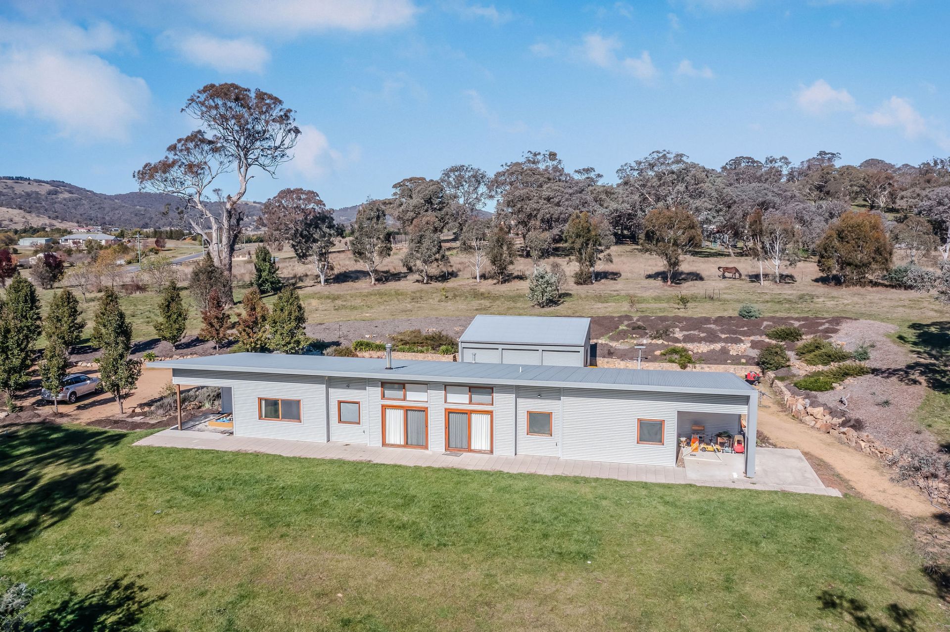 Set on a picturesque 11 acres the home makes the most of the northerly aspect and views through the large gums to the valley below.