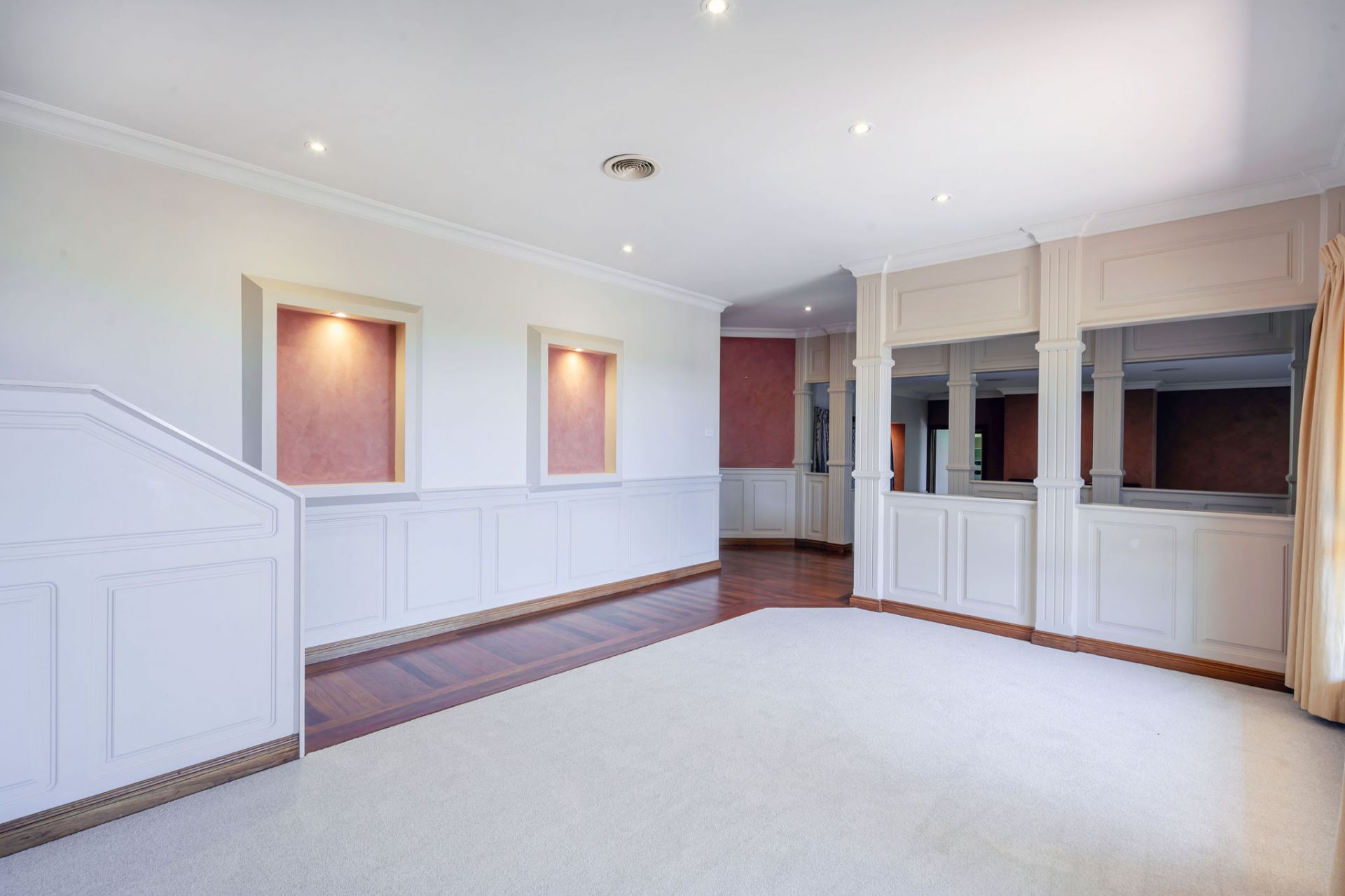 On entering the home, you will notice the stunning Sydney blue gum flooring. The formal lounge and dining are positioned just off the entrance way and set the tone with the split-level design and built-in fireplace.